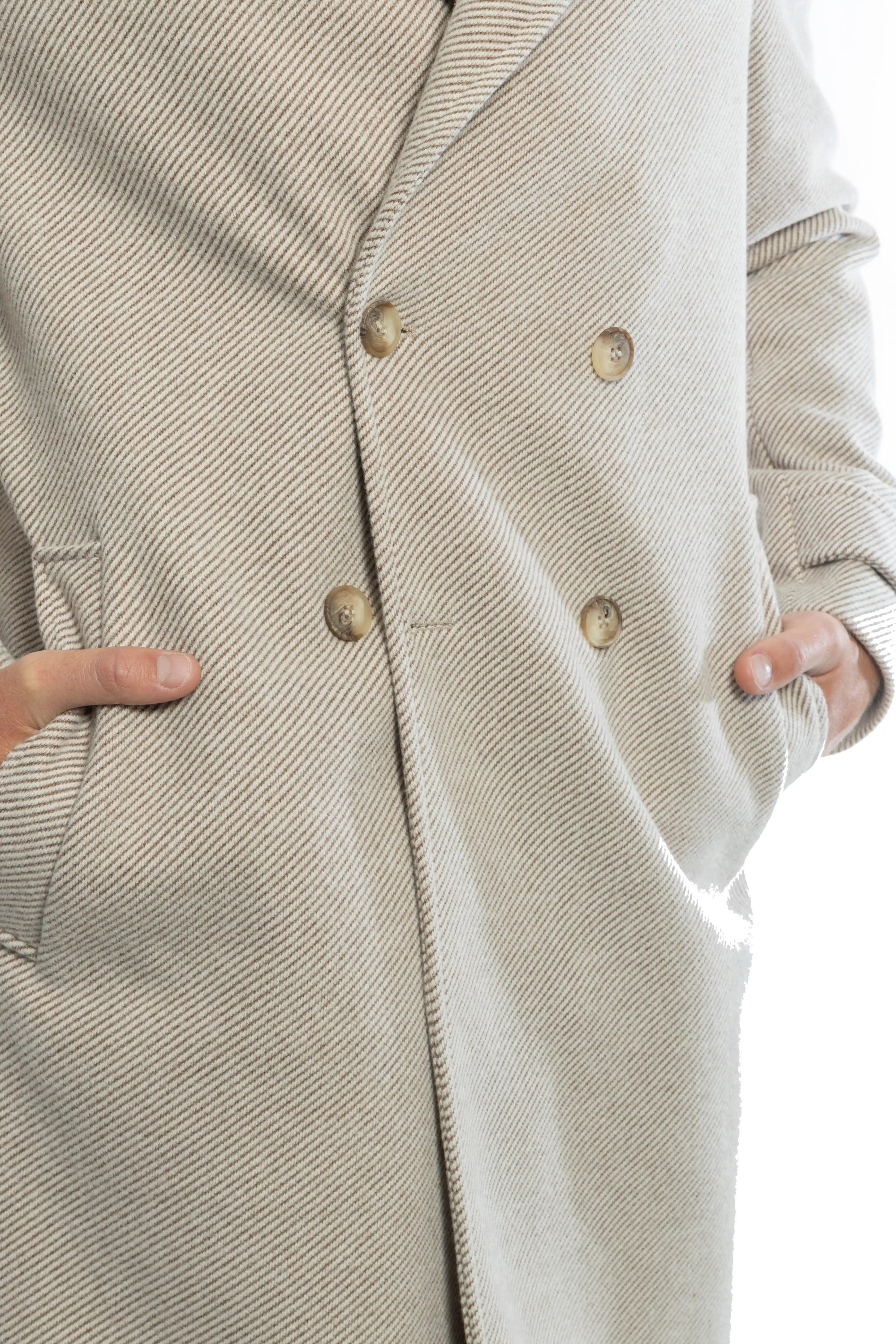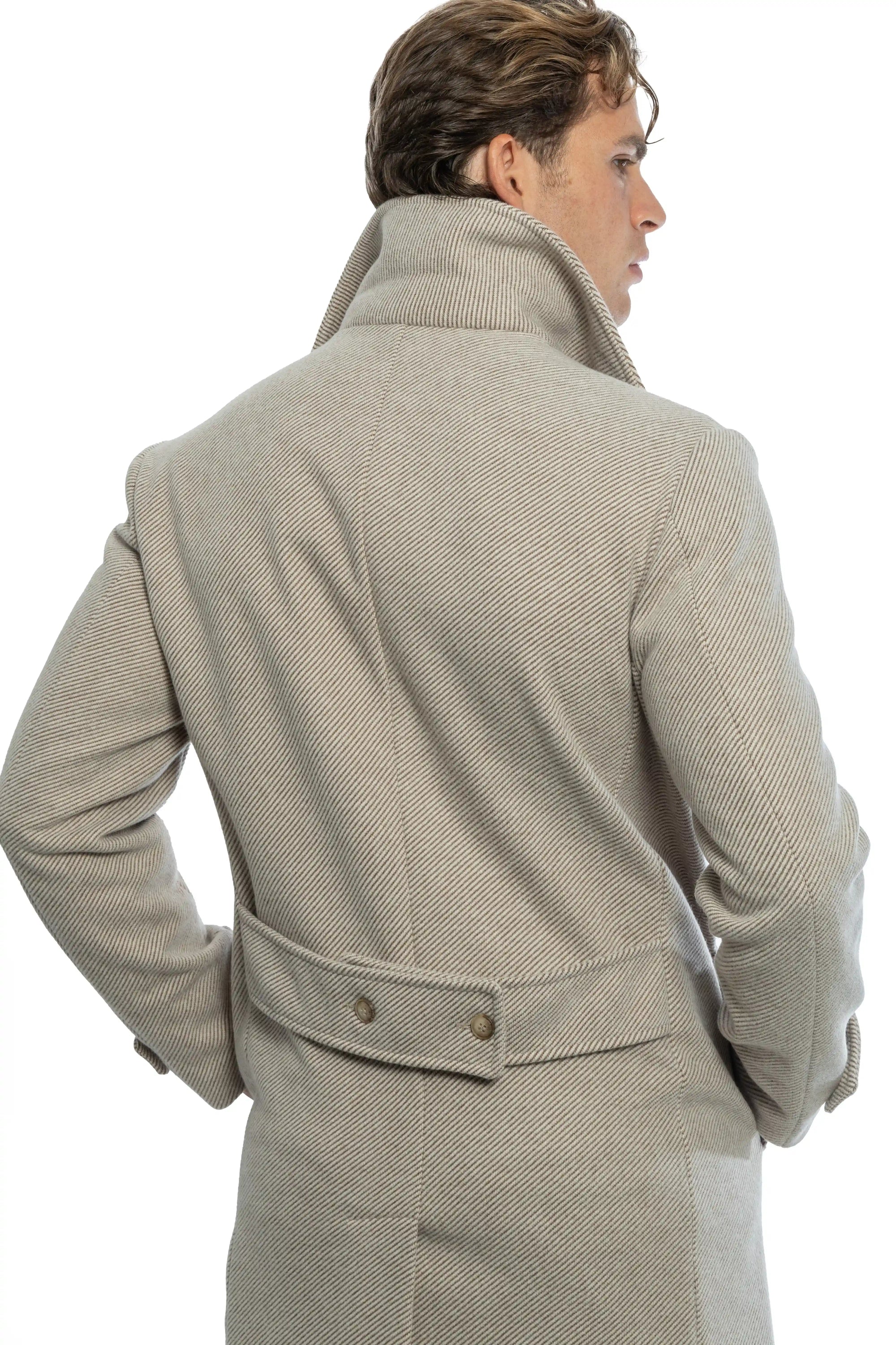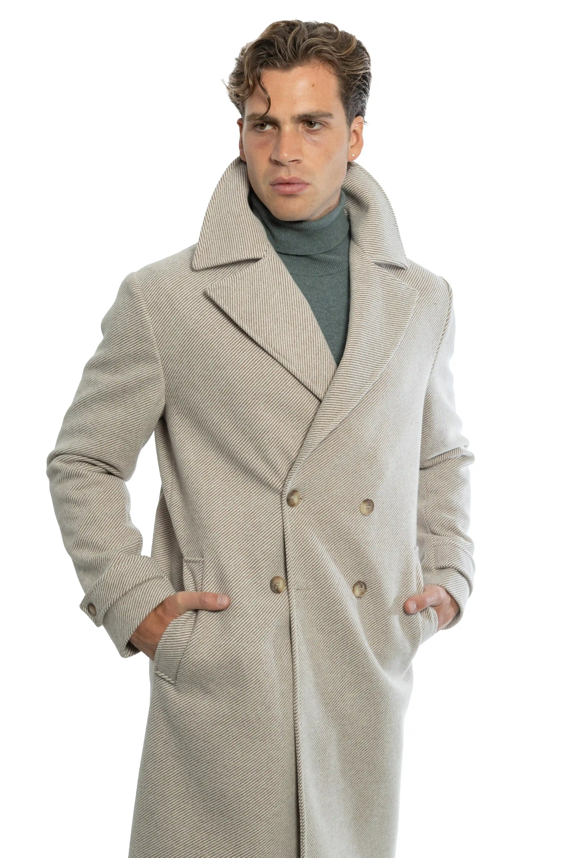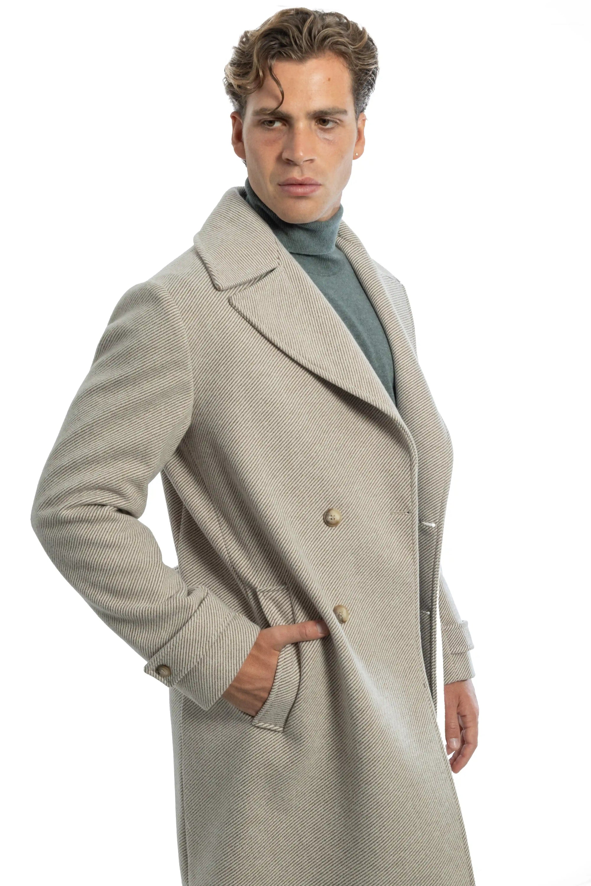 Cappotto sartoriale doppiopetto con tessuto diagonale