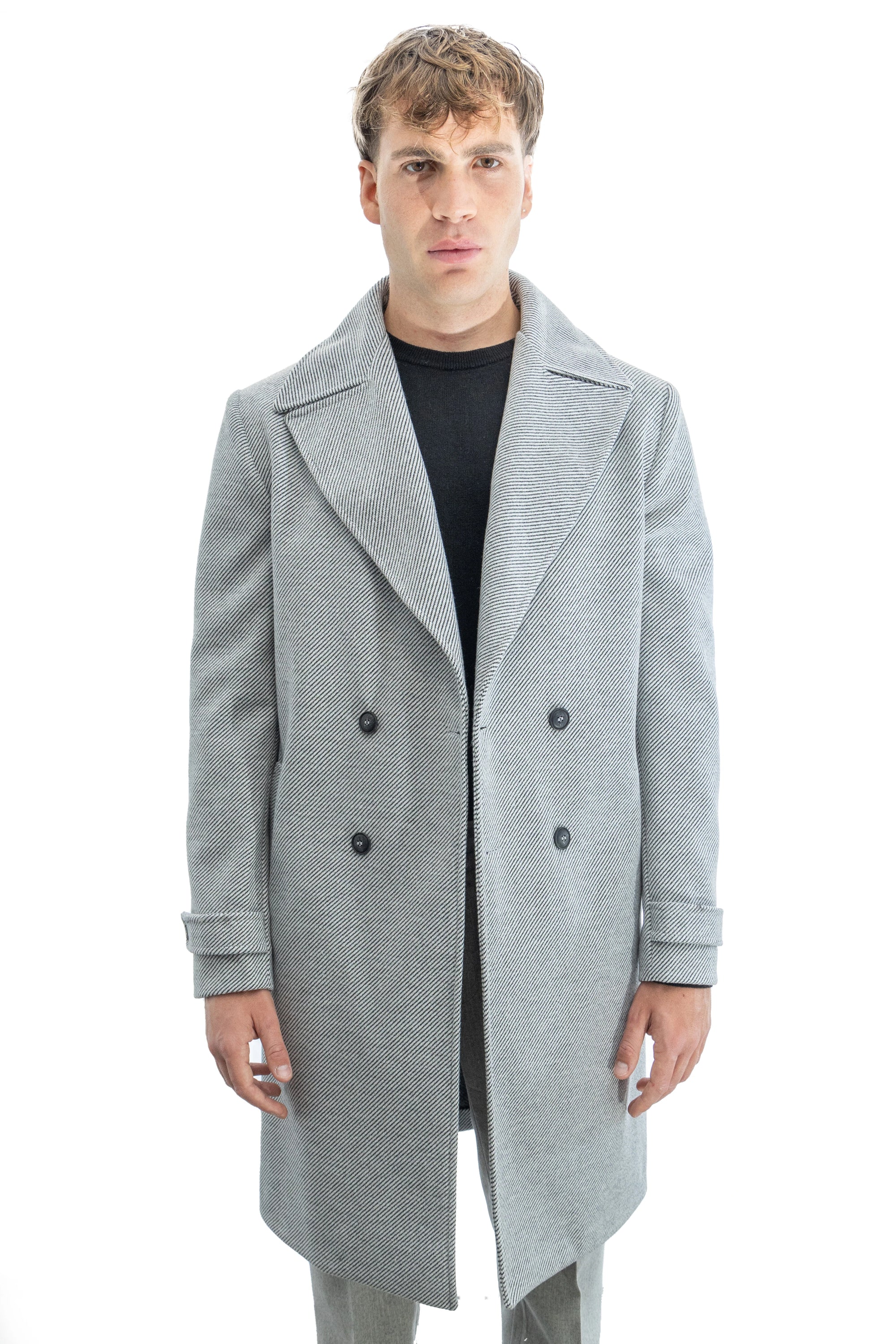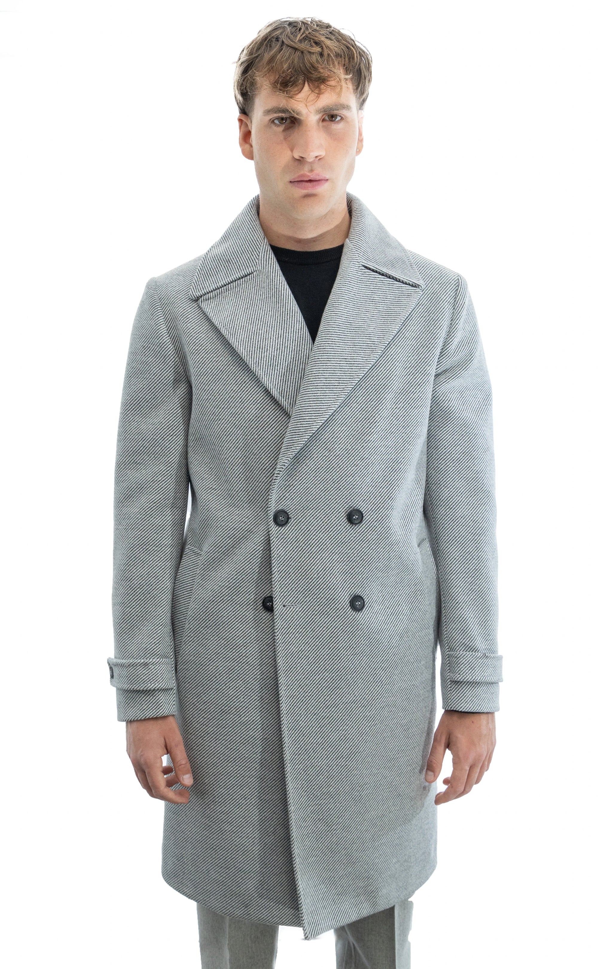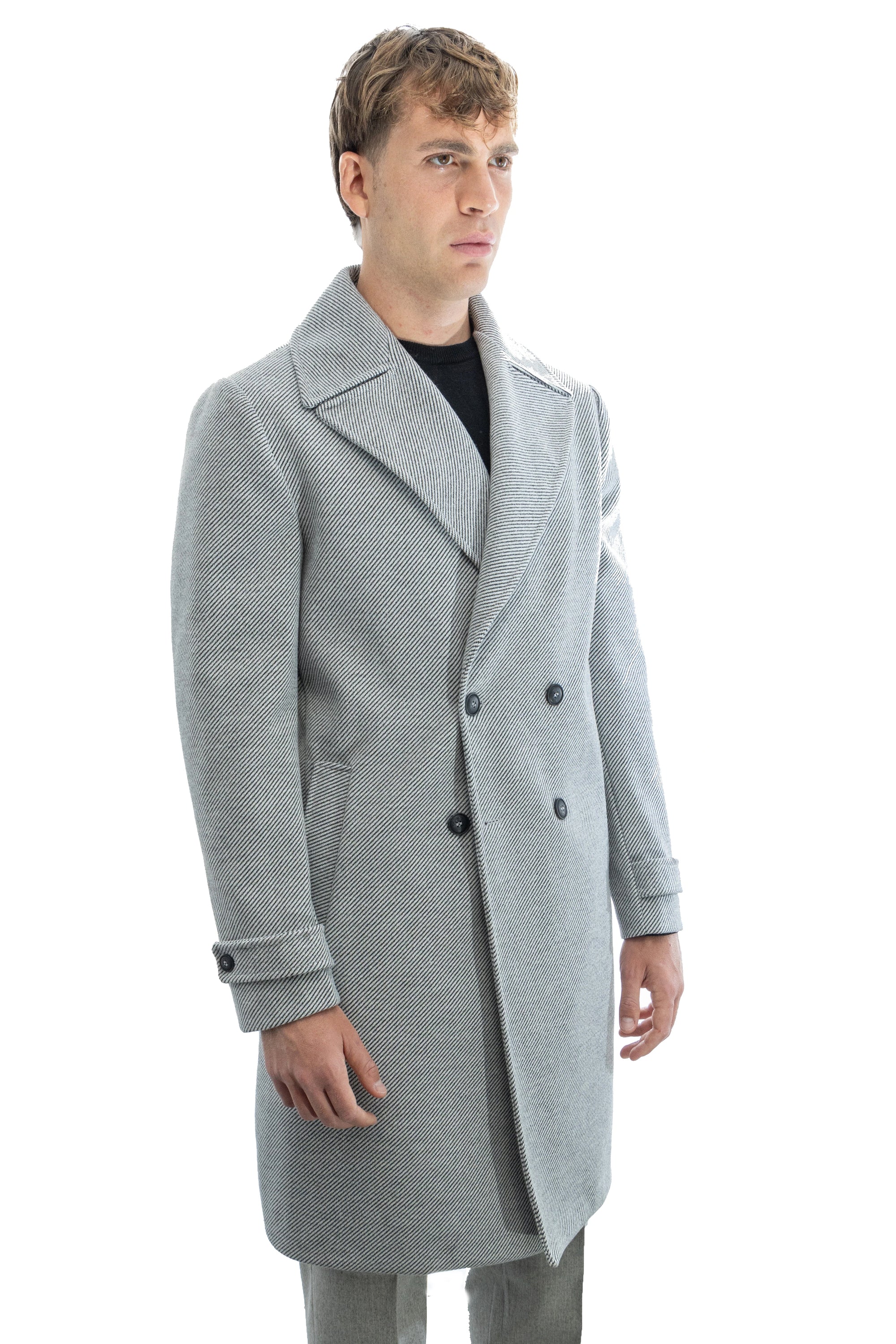 Cappotto sartoriale doppiopetto con tessuto diagonale
