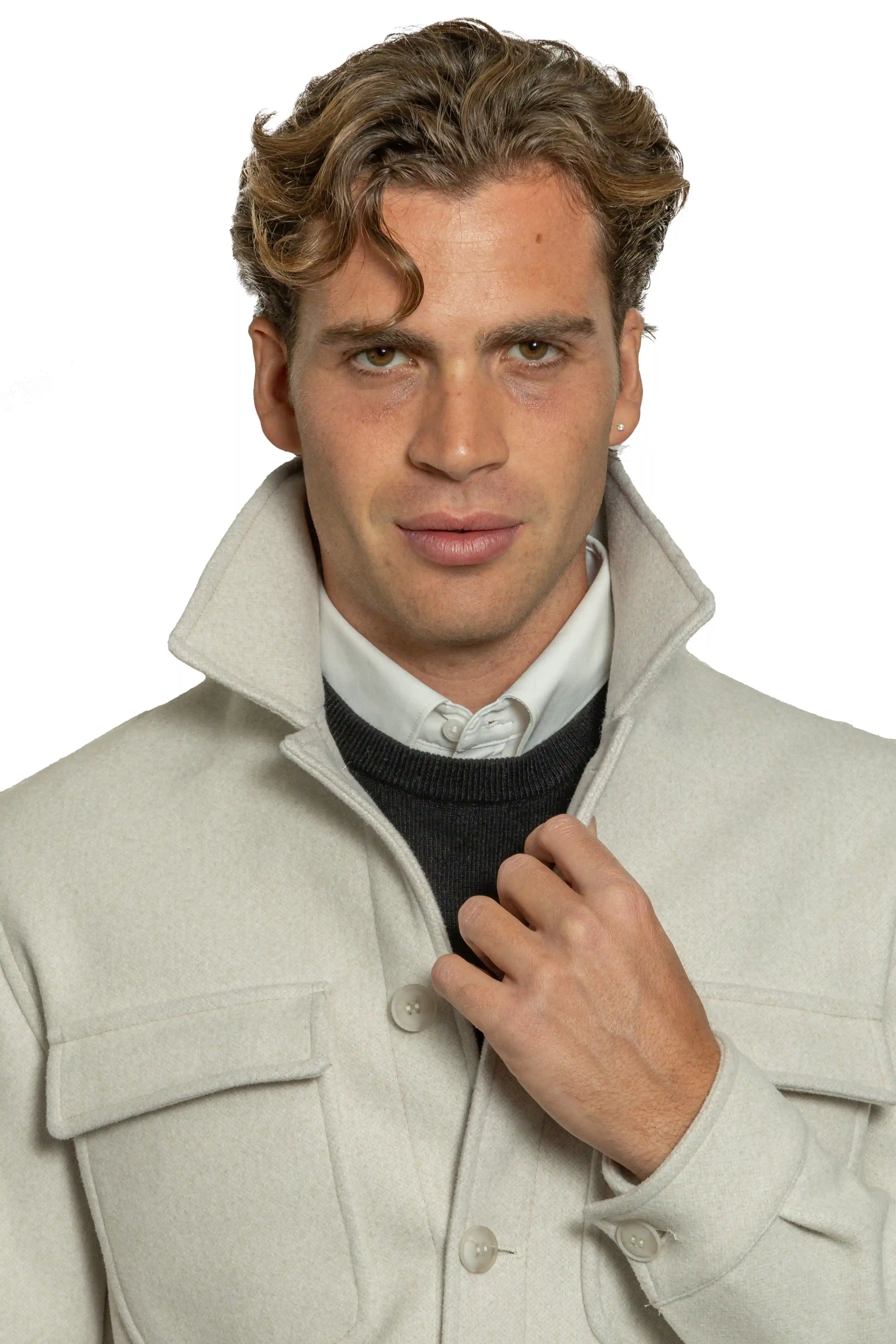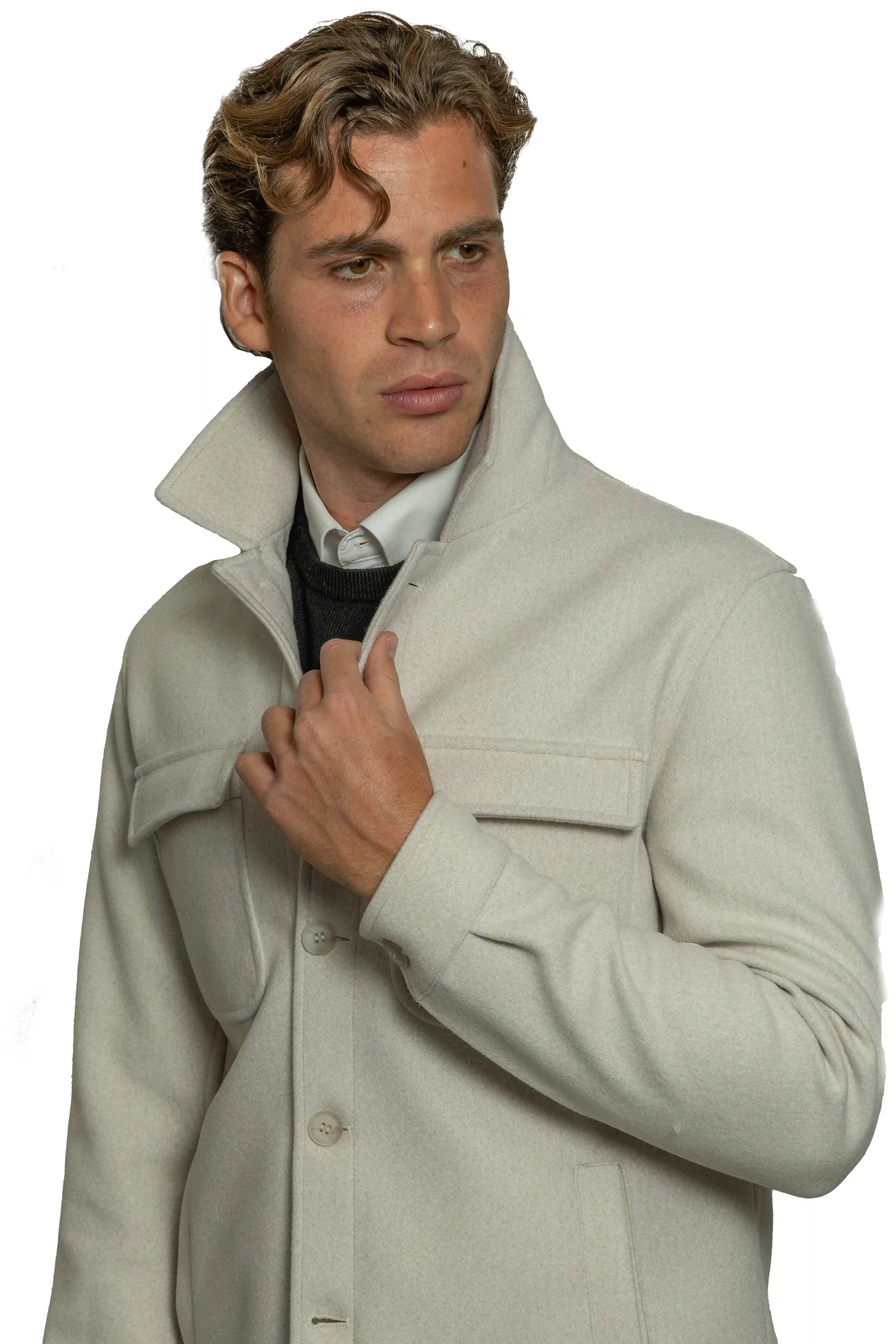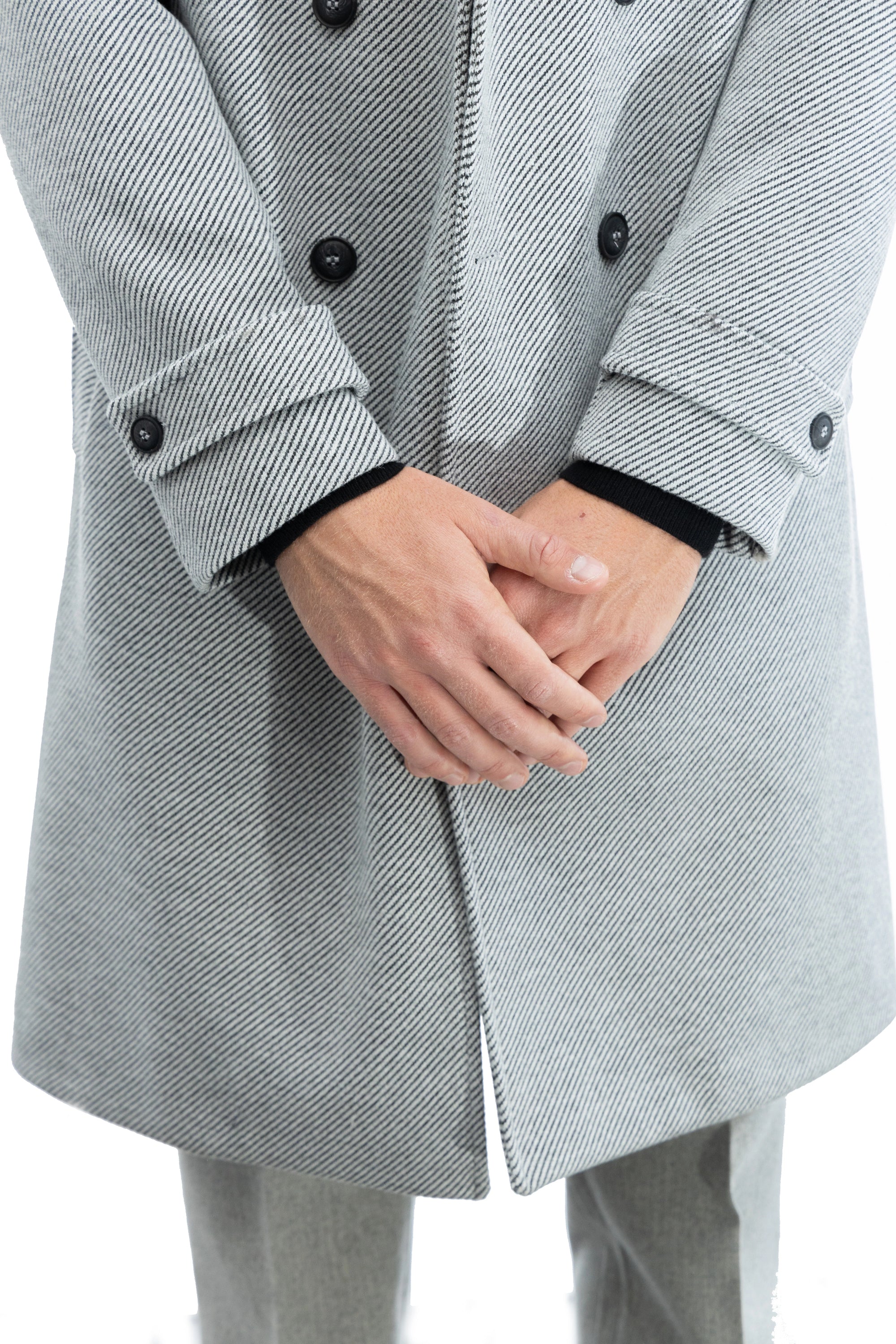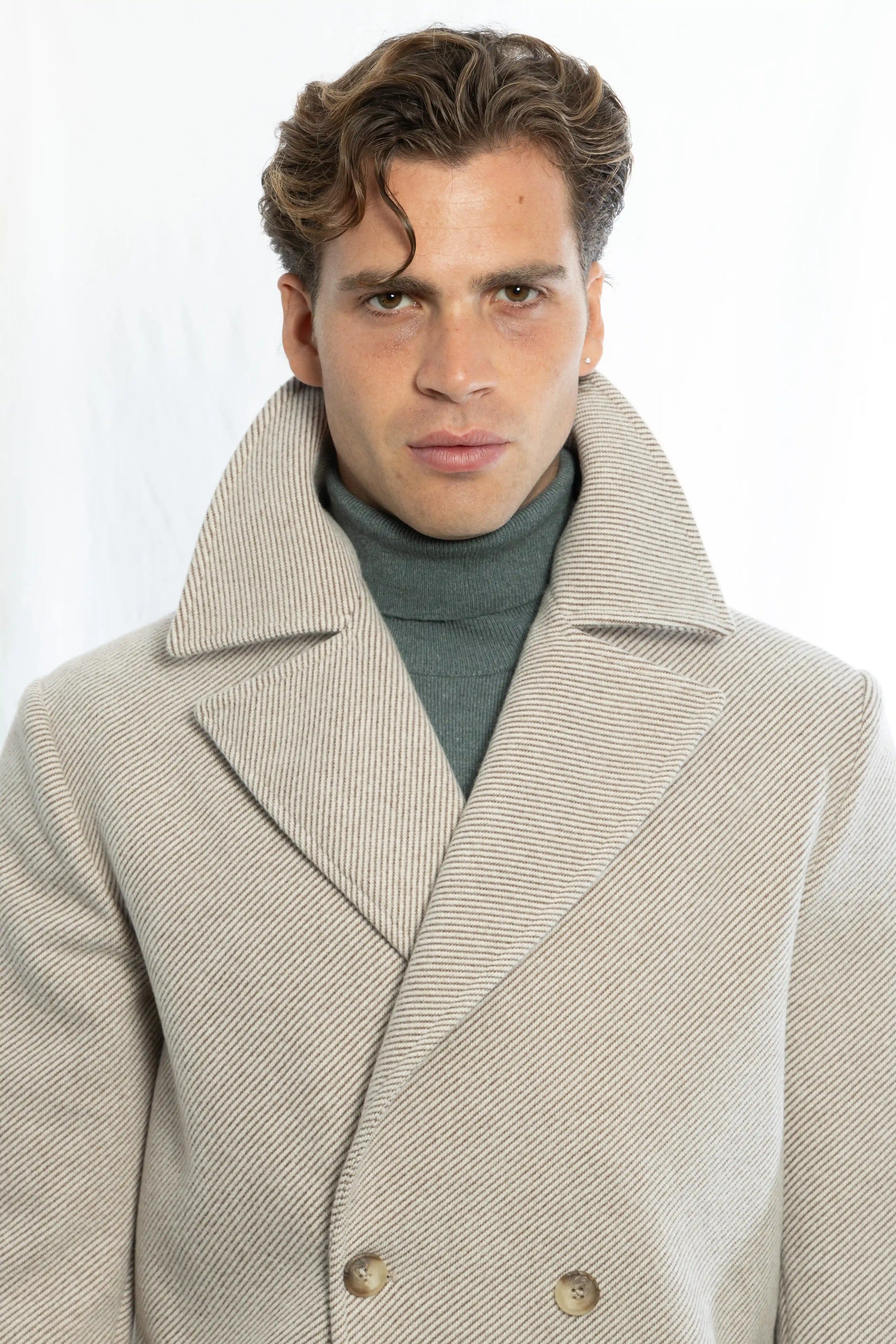Cappotto sartoriale doppiopetto con tessuto diagonale