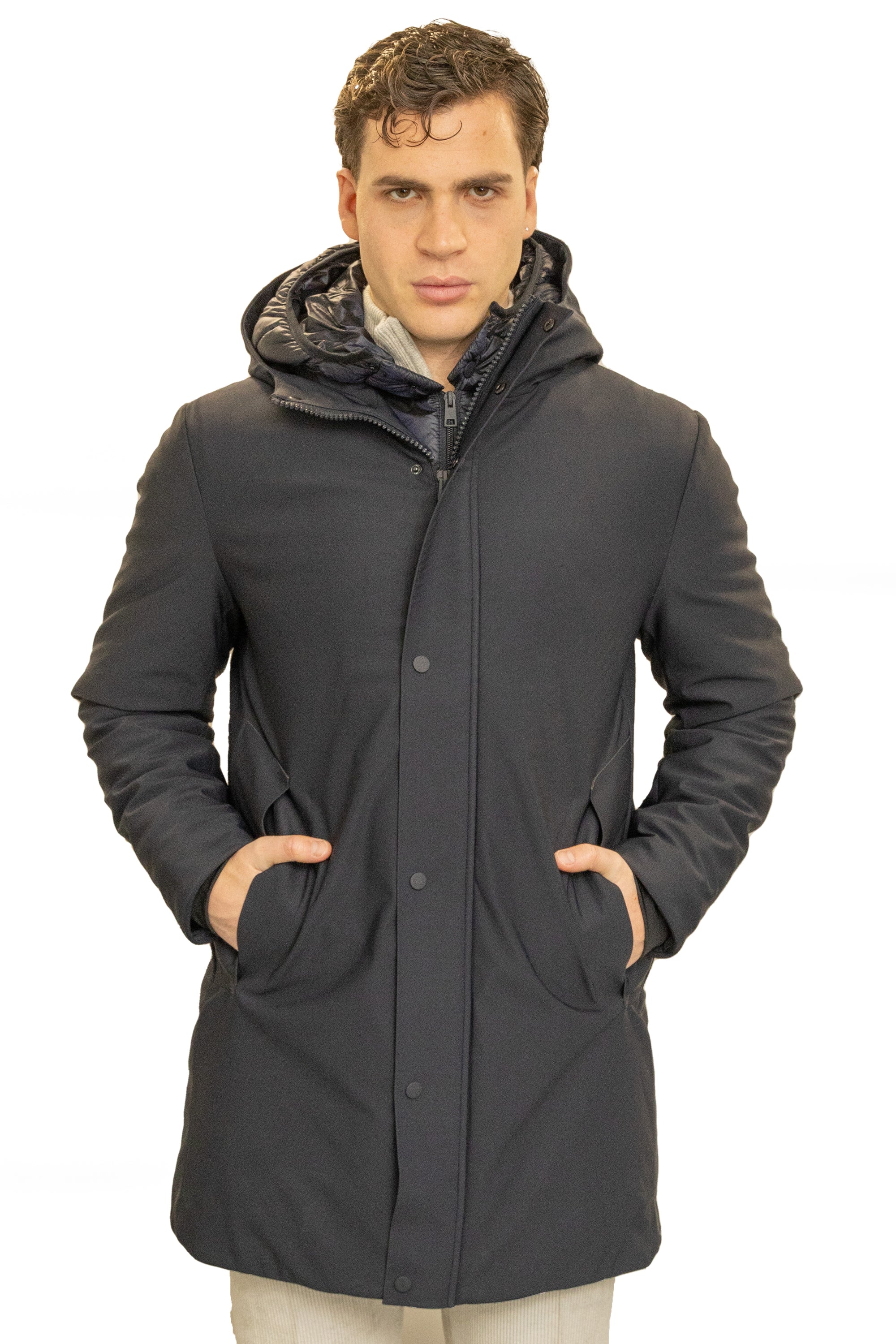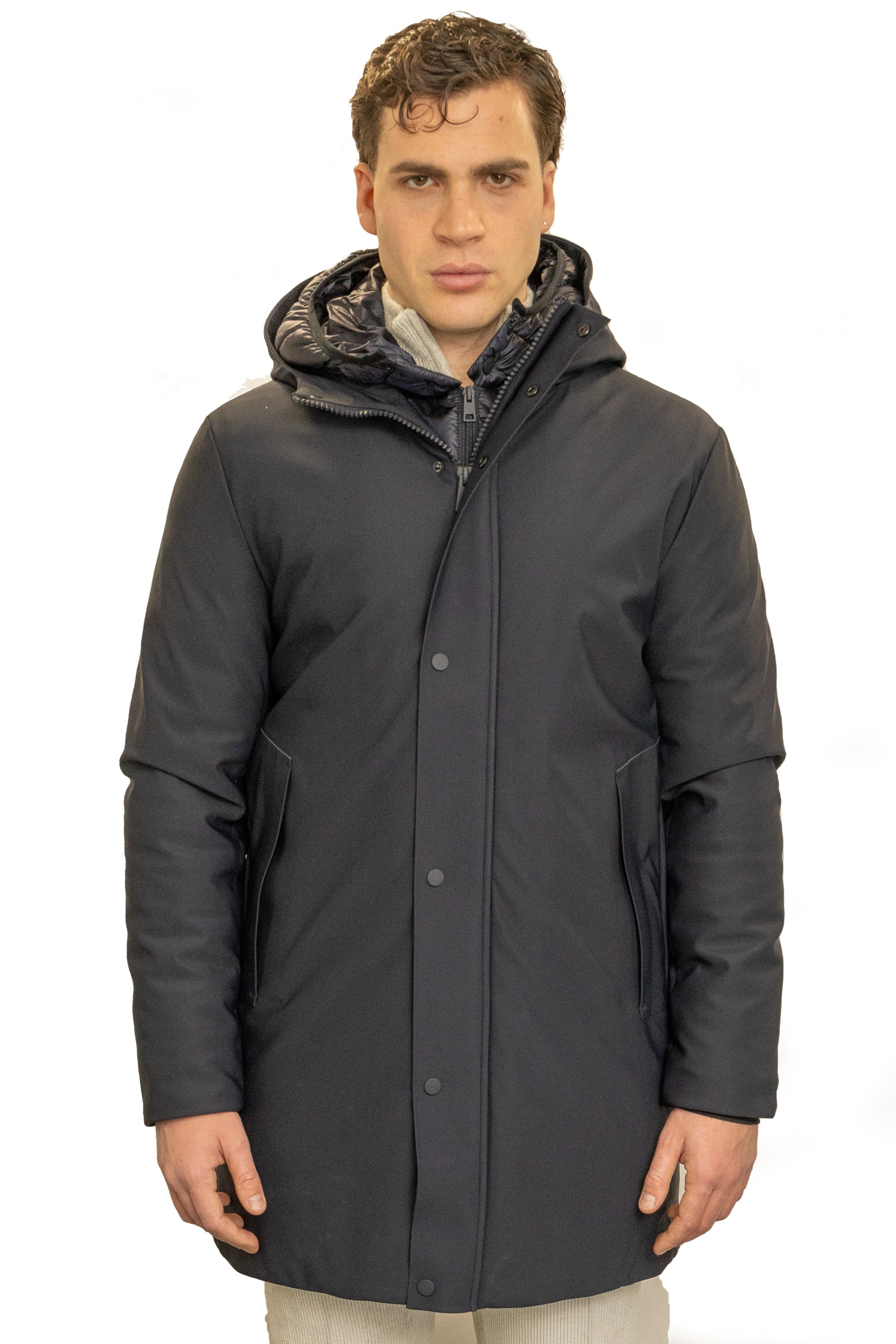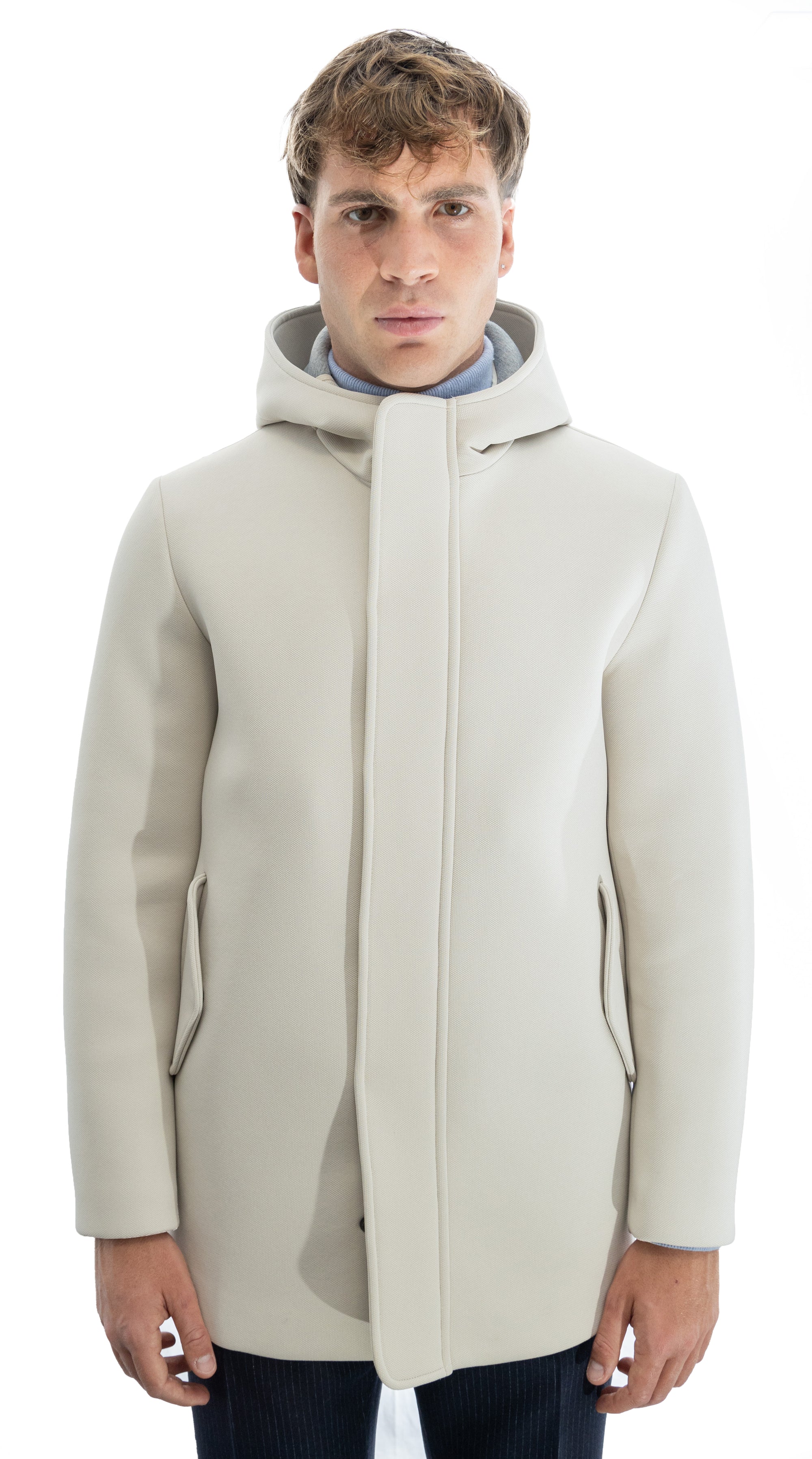 Parka in scuba termico con chiusura antivento