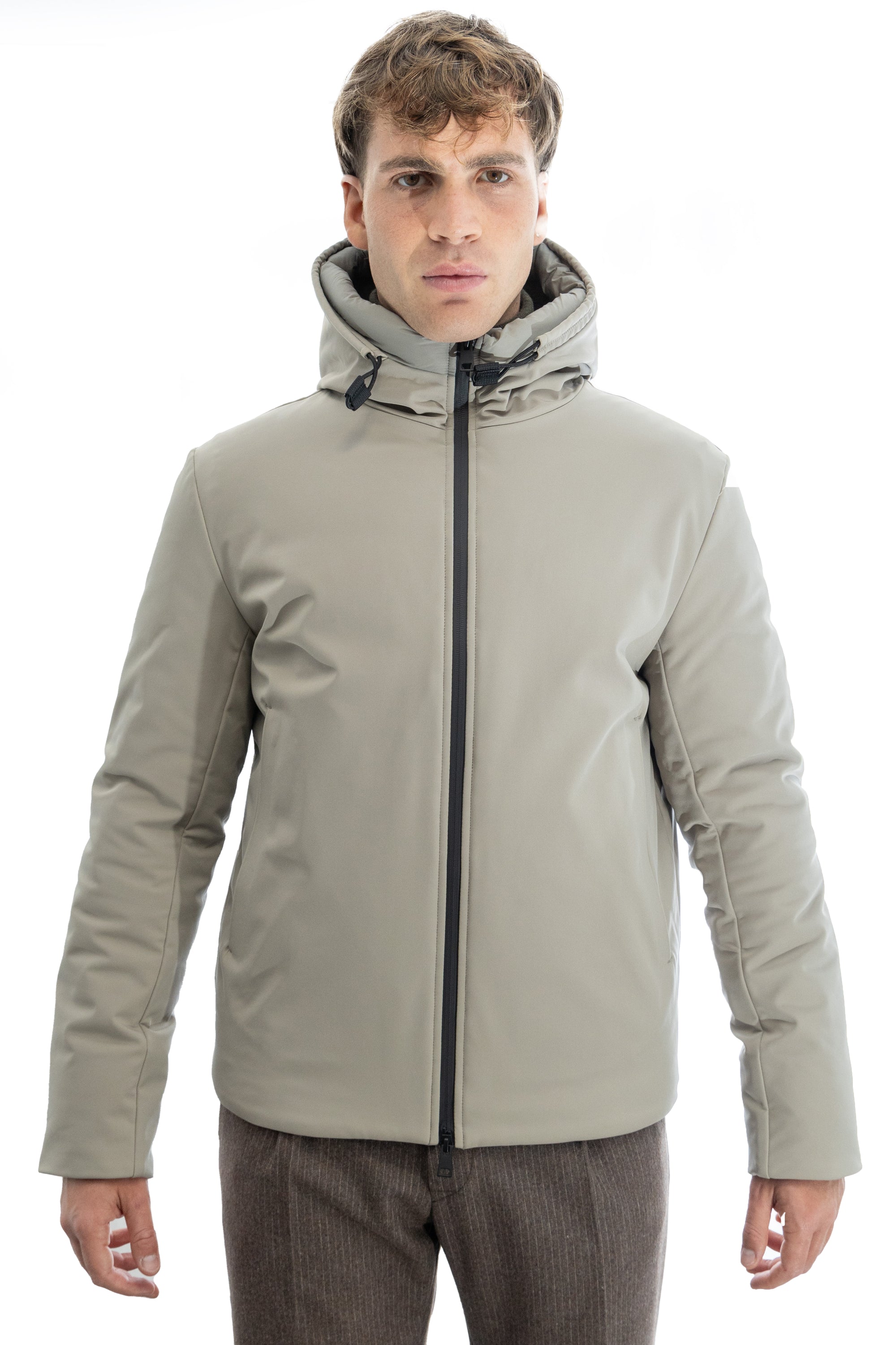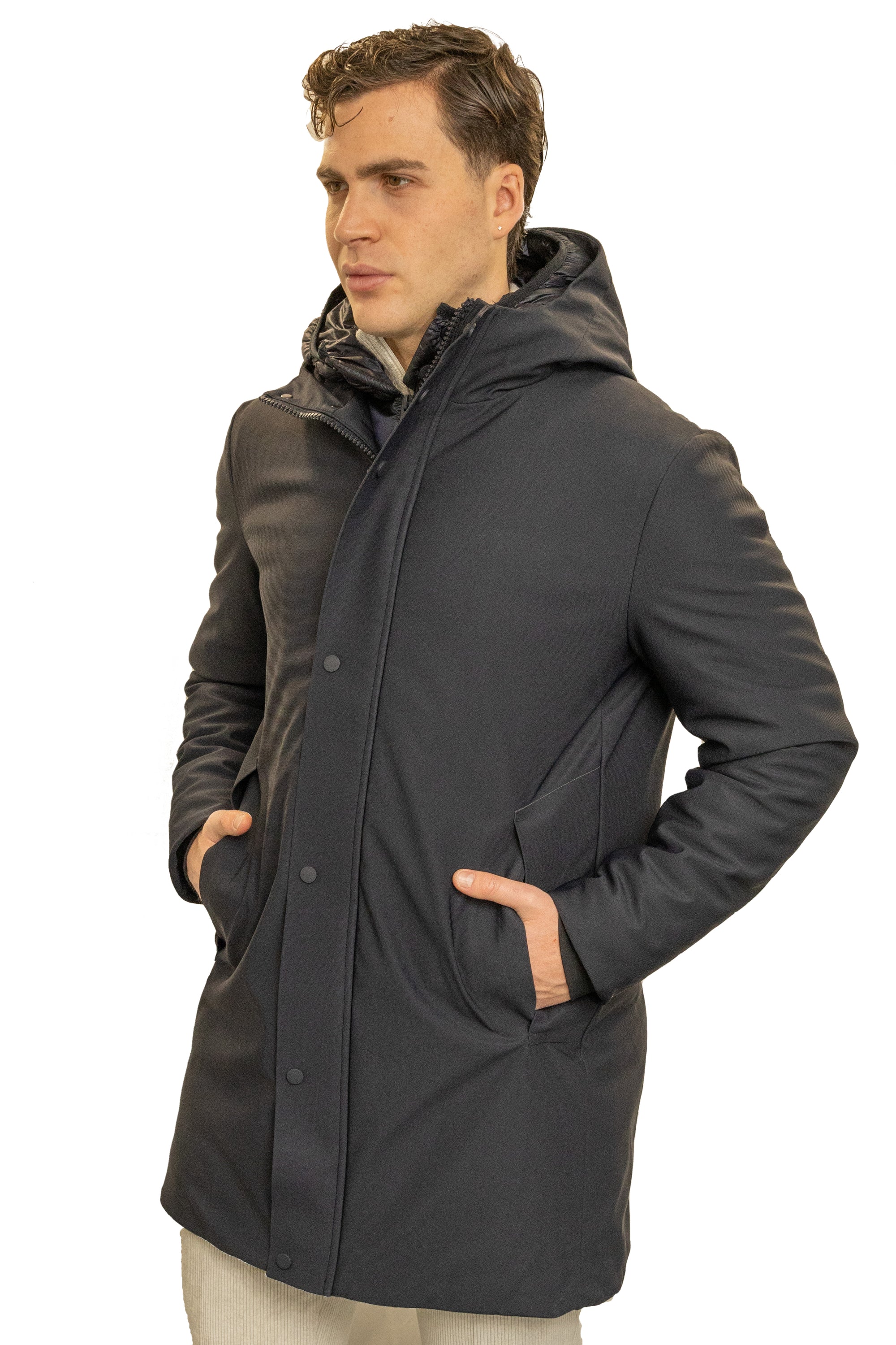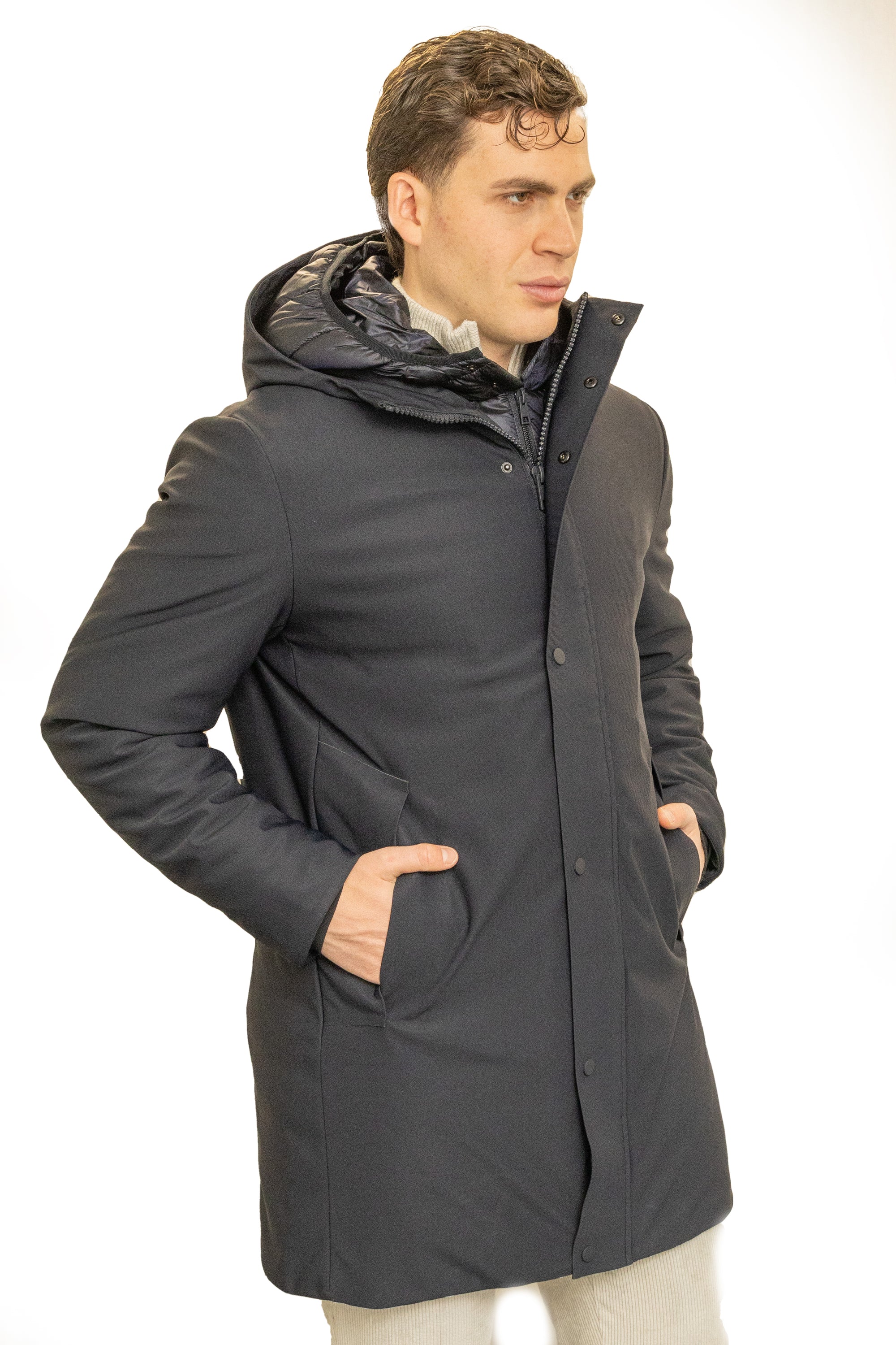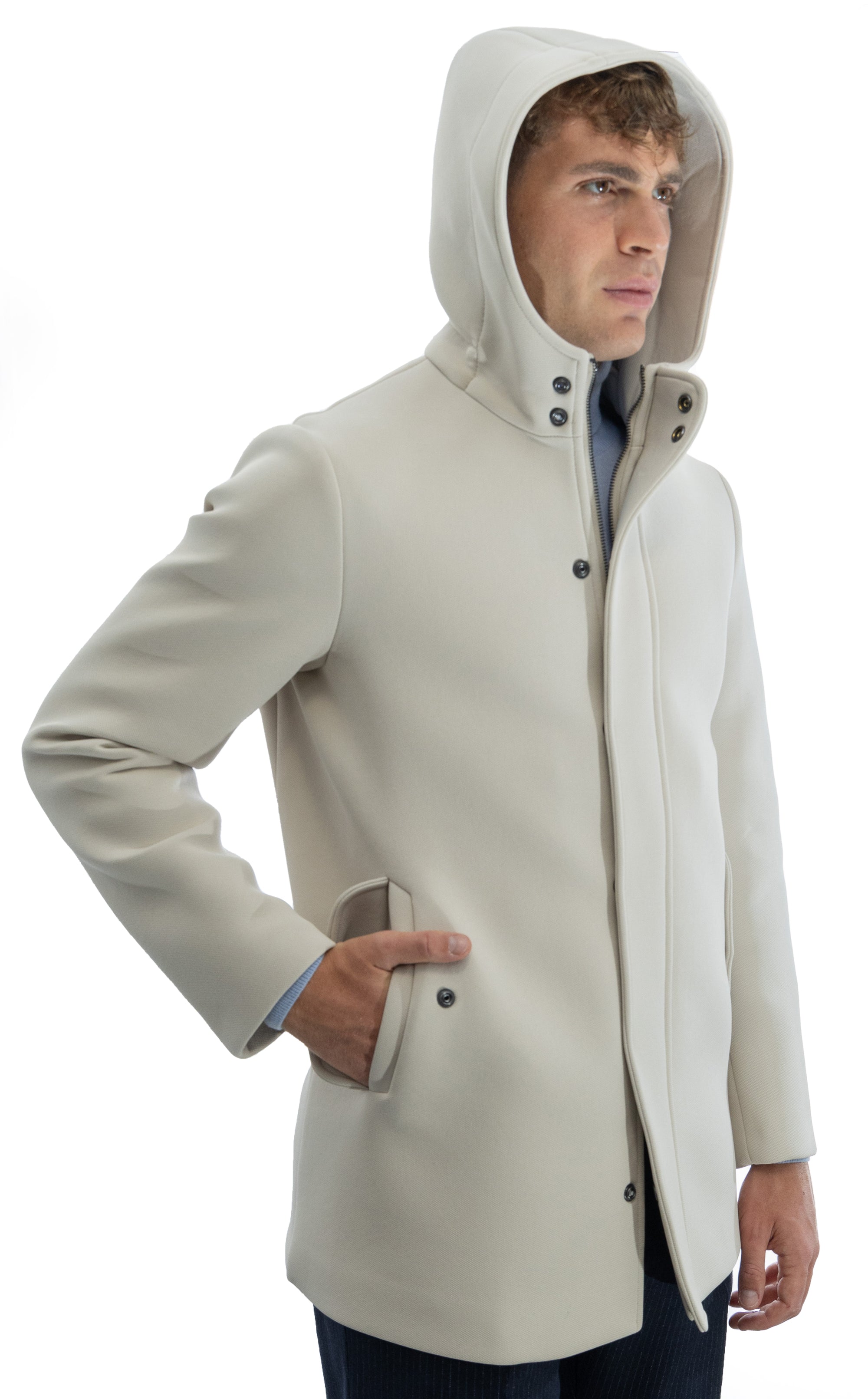 Parka in scuba termico con chiusura antivento